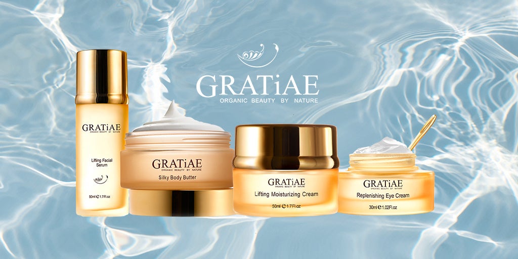 グラティエの商品には、紀元前2世紀の北イスラエルでローマ皇帝によって発見されたガラリア湖近くにある“Gratiae”の温泉水を使用。最大125℃で噴出するGratiaeの温泉水には豊富なミネラルが含まれており、治療効果やエイジングケアが期待できるとして世界的に有名です。さらに死海のミネラル、オーガニックオイル、植物エキスとふんだんに配合し、タイムレスな美しさと輝きをお届けします。