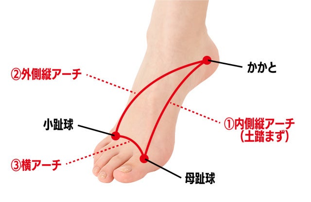 「足裏アーチ」はバネやクッションにもなる重要な部位で、身体のバランスを保つ上でも重要な役割を果たしています。