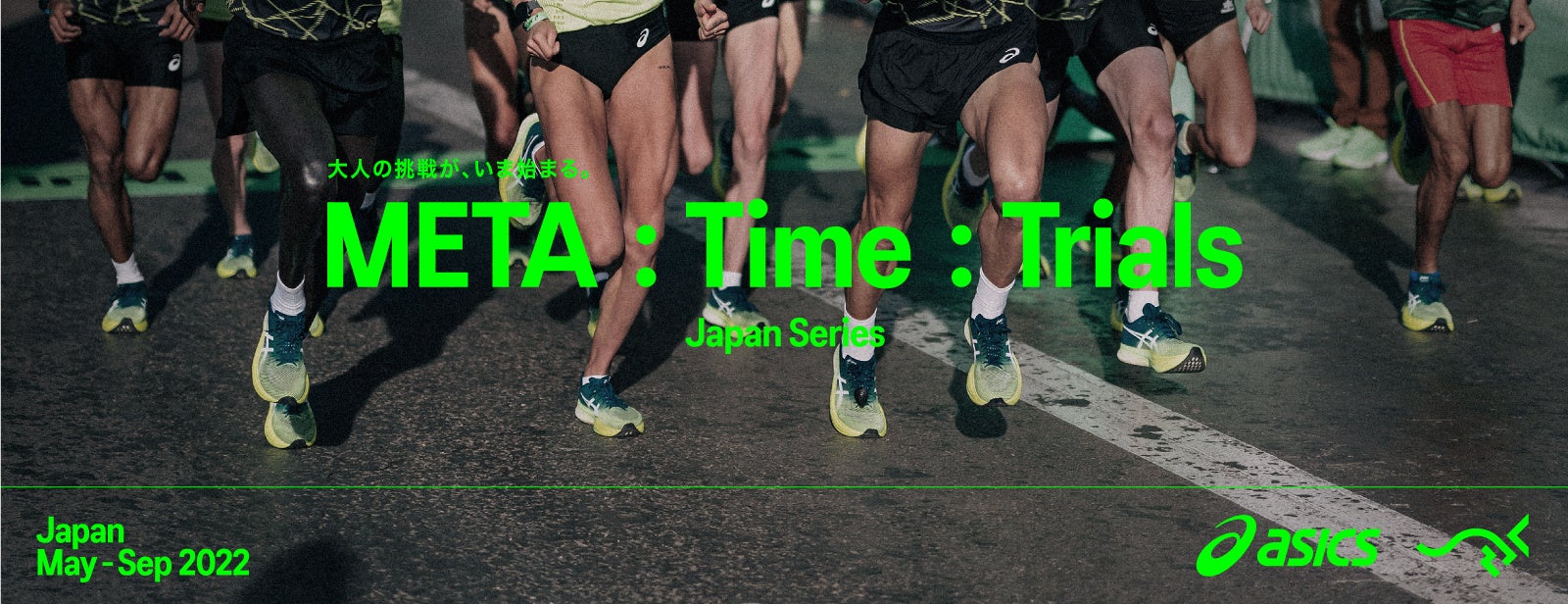 レースは全国6地区(北海道、関東、中部、関西、中国、福岡 期間:6月26日から)とバーチャル(開催期間:5月24日~7月31日)で行い、9月24日に当レースでの上位入賞者を対象とした決勝大会を東京で実施する予定です。本イベントは「大人の挑戦が、いま始まる。」をコンセプトに、2022年4月24日にスペインのマラガで開催したアシックス主催の世界陸連公式レース「META:Time:Trials(メタ・タイム・トライアル)」*1の日本版として企画しました。今回は、走力に自信のあるランナーが、自己記録の更新など目標を持ちながら楽しく参加できるよう、走行距離を5000mに設定しています。