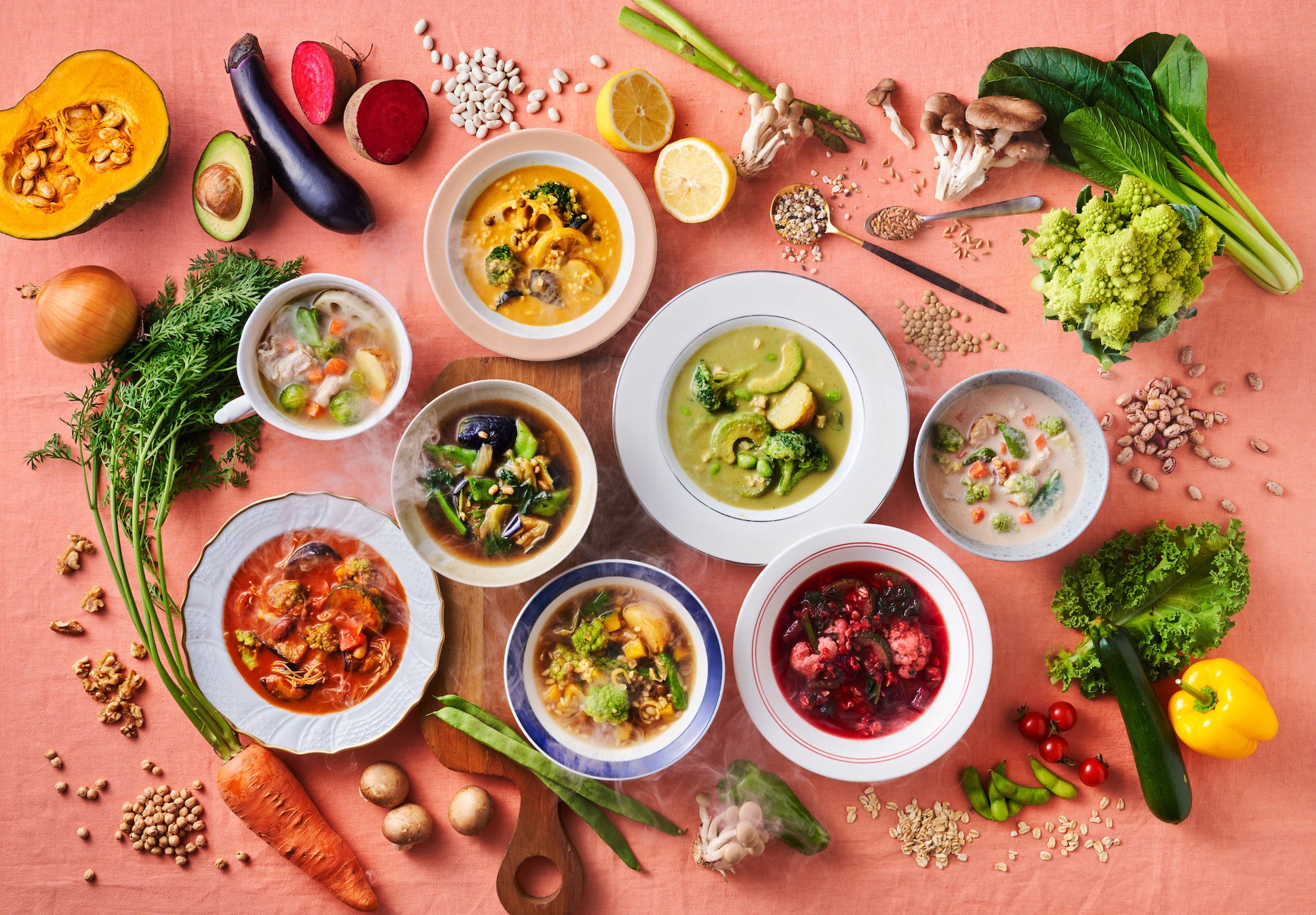 「GREEN SPOON」の野菜スープは、水またはアーモンドミルク・牛乳・豆乳などお好きな飲み物を入れ、電子レンジで5分温めるだけで完成。管理栄養士が栄養価や食材のバランスを計算したおいしいレシピと、無添加*¹のゴロゴロ食材を手軽に楽しむことができます。