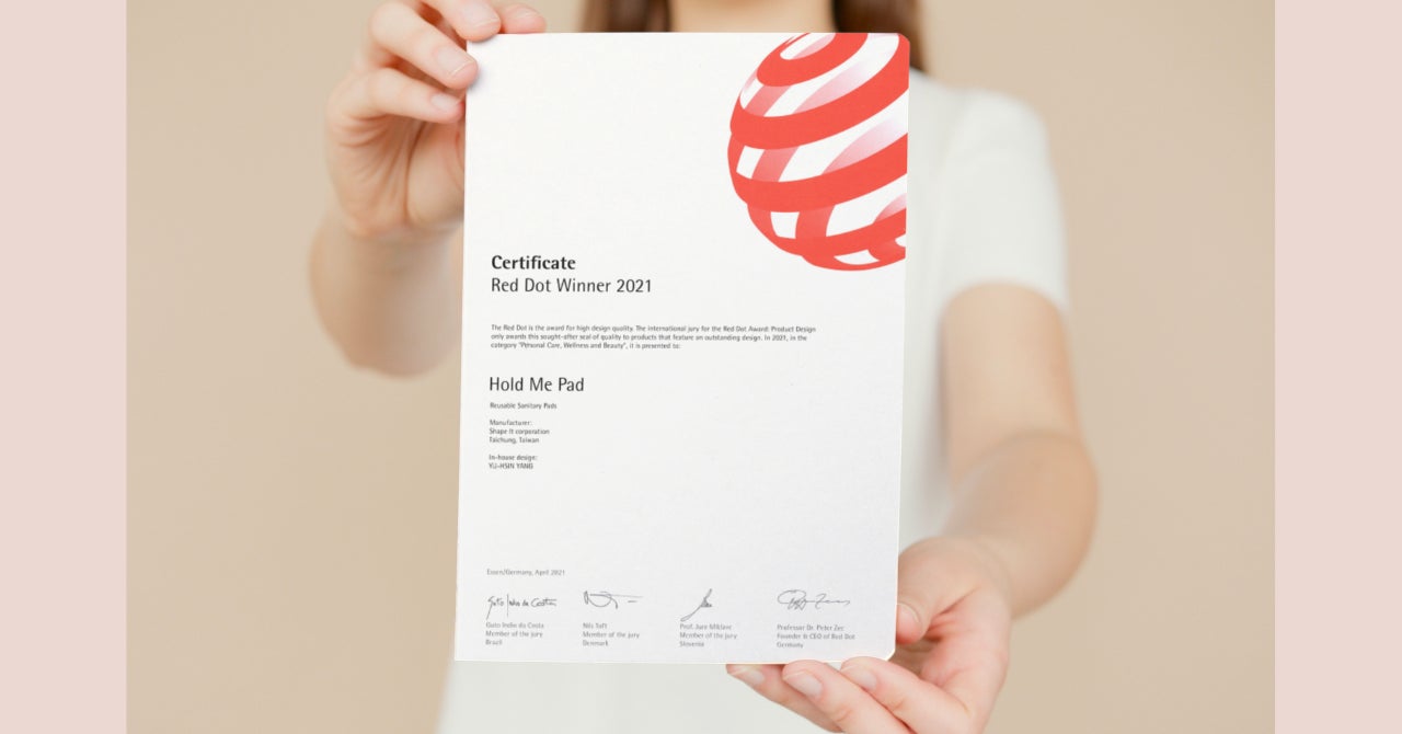 アウターに響きにくい薄型デザインで、「吸収力、防水性、透湿性、抗菌性」に優れ、またコットン製品と比較して汚れが落としやすく、乾きやすいためお手入れも簡単。「使いやすさの点で高い基準を満たした吸水パッドである」として2021年にドイツのプロダクトデザイン賞「Red Dot Award」を受賞しました。