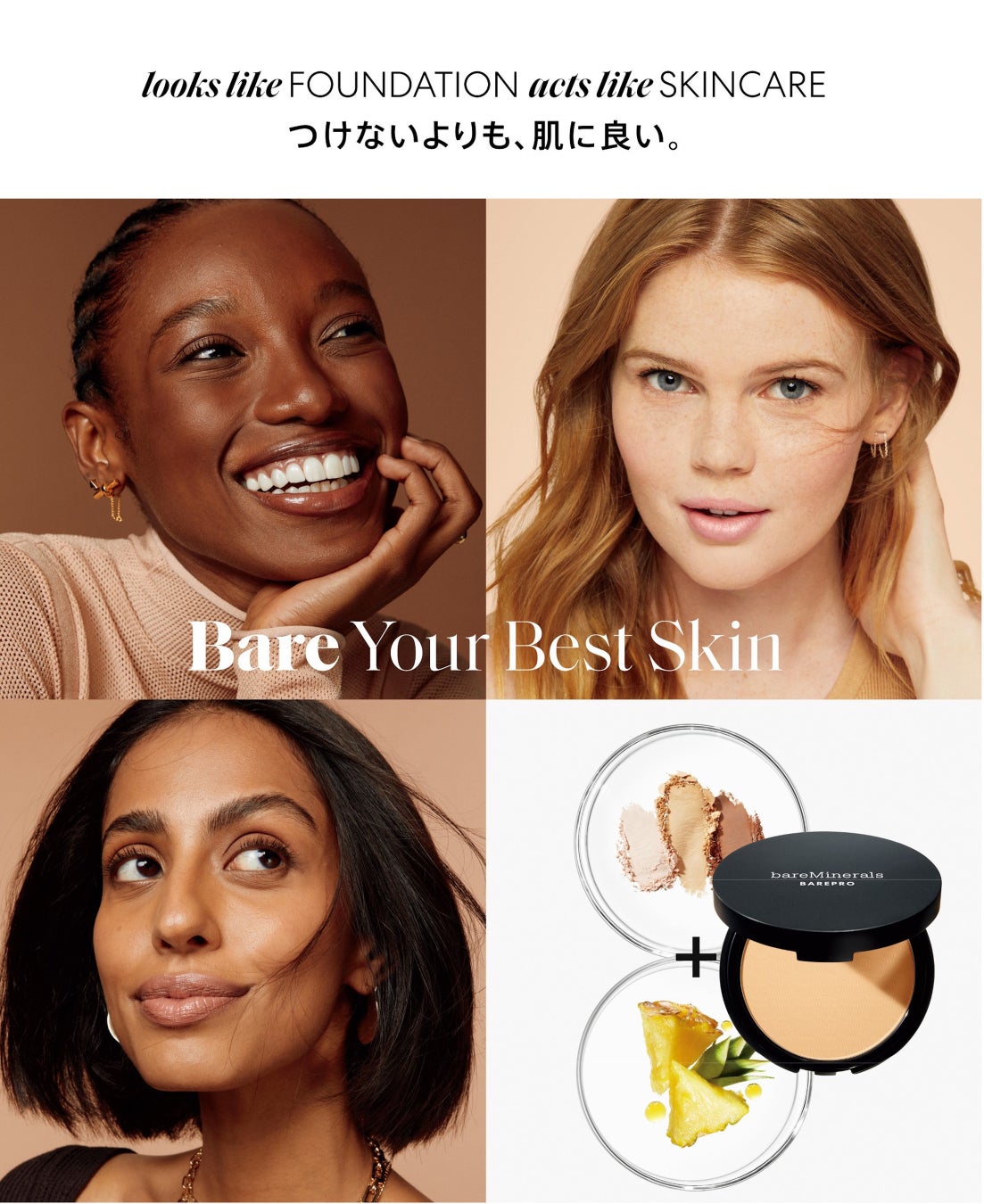 「ベアプロ 16HR パウダー ファンデーション」は、肌と地球に負担をかけないクリーン フォーミュラで、厳しいクリニカルテストをパスし、ファンデーションの役割に留まることなくスキンケアのようなリアルな手応えをもたらす高性能なパウダー ファンデーションです。前作「ベアプロ パウダー ファンデーション」の発売から5年を経て、よりクリーン フォーミュラに進化し、粉感を感じさせないしなやかで軽い化粧膜が、皮脂や汗による崩れやテカリを抑え、美肌カバーを16時間持続*します。また、つけている間スキンケア成分***がうるおいを与えてキメを整え、明るさを備えた美しい素肌へと導きます。