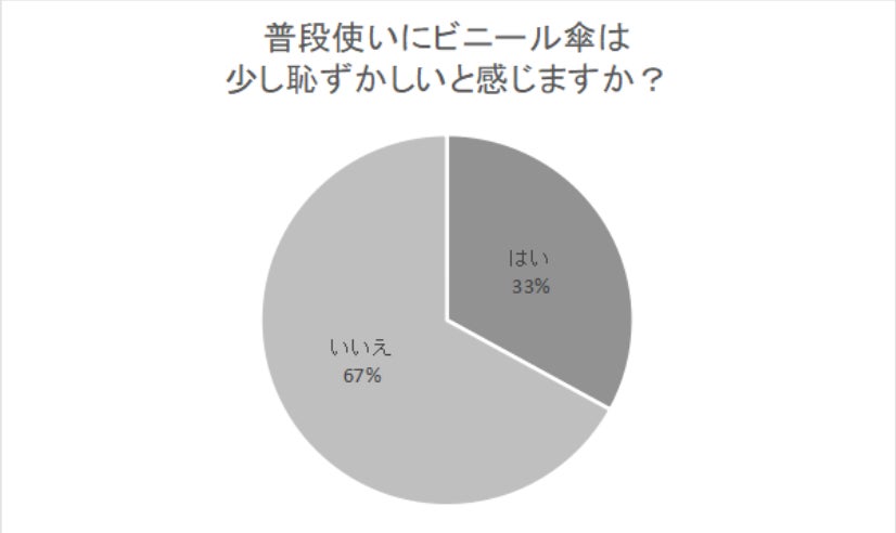 「はい」と答えた人は33%です。この結果を見る限り、ビニール傘は特別恥ずかしいものではないと考えられていることがわかります。
