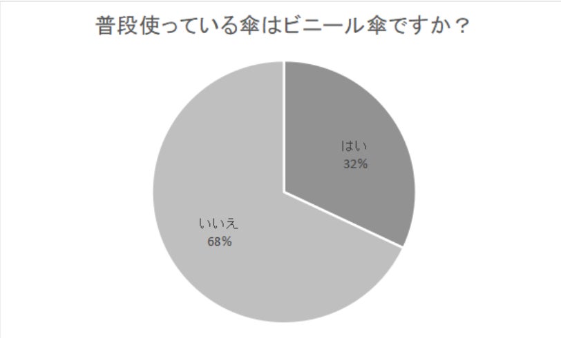 次に、「普段使っている傘はビニール傘ですか?」という質問もしました。すると、「はい」と答えた人は32%という結果でした。