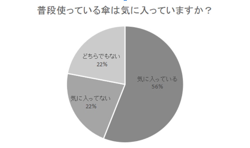 綺和美では、「普段使っている傘は気に入っていますか?」というアンケートを行いました。すると、半数以上の56%の人が「気に入っている」と答えました。