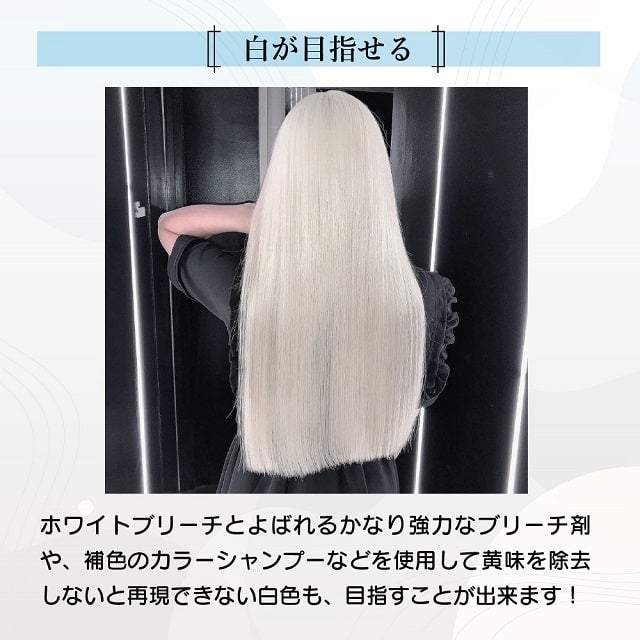 一度のブリーチ施術でより白い色に近い仕上がりが目指せます。