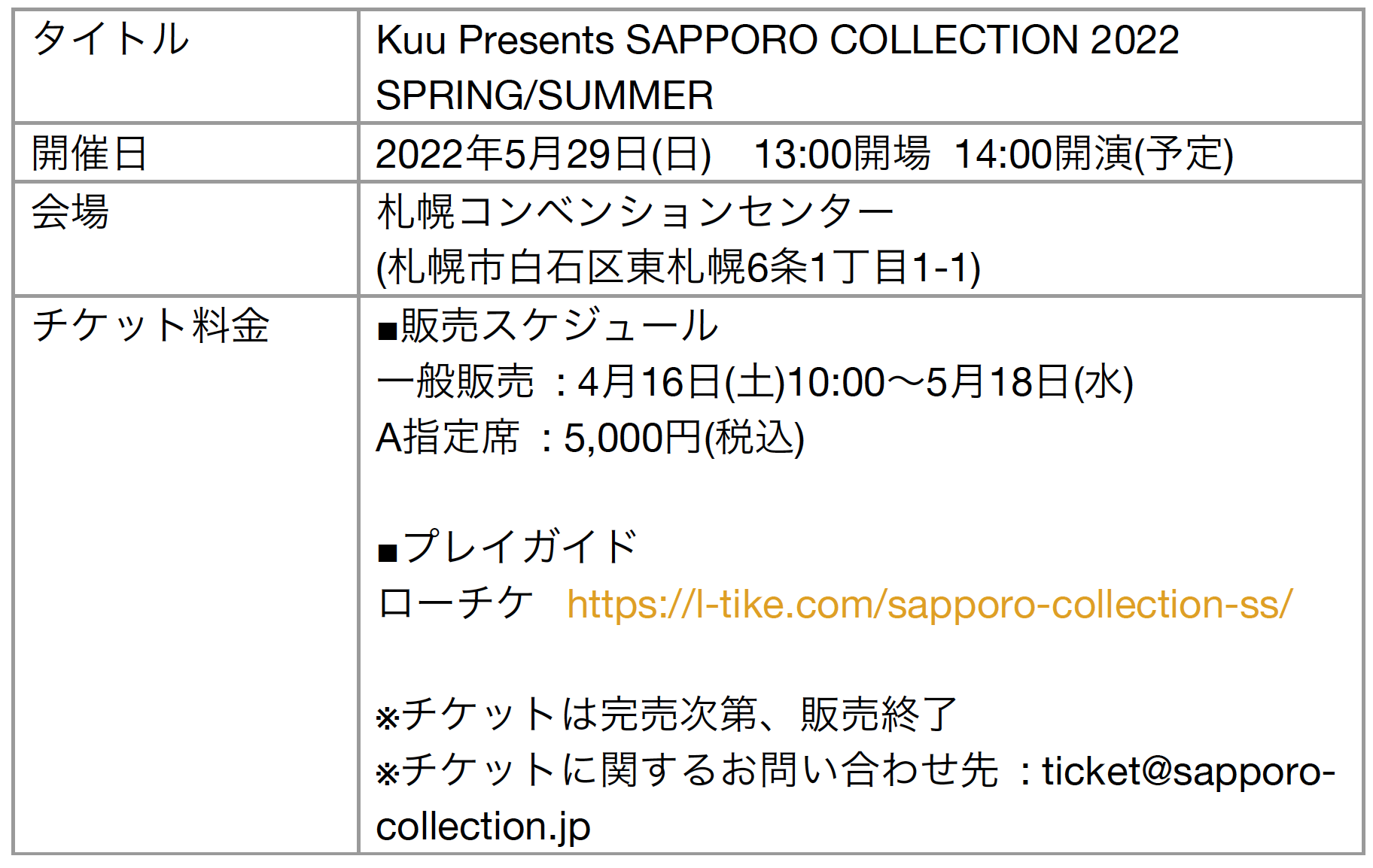 Kuu Presents SAPPORO COLLECTION 2022 SPRING/SUMMER 開催概要