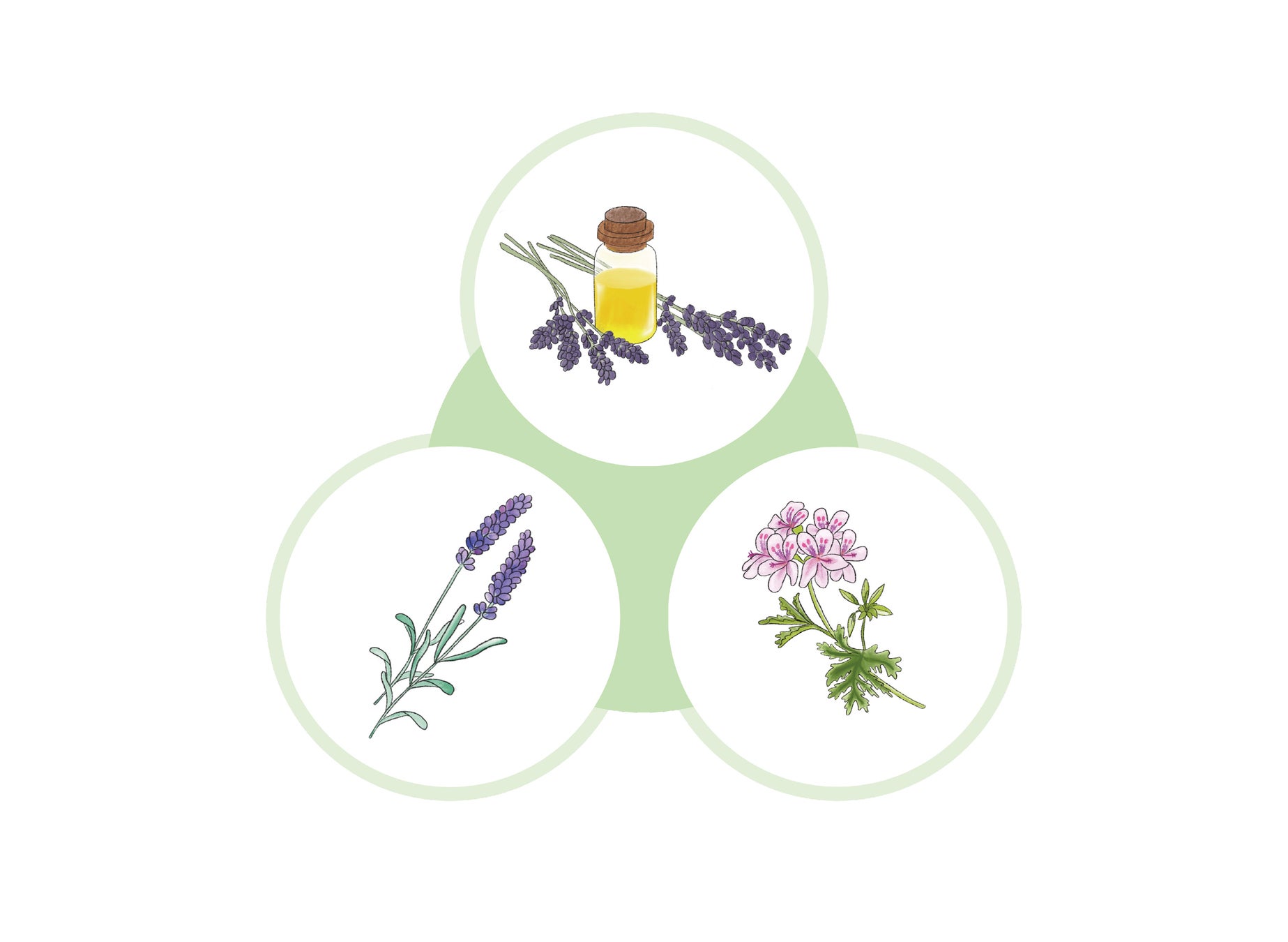 アロマテラピーの代表的な香りでリラックス効果があり、ストレスの緩和や快眠に効果的だと言われているラベンダーに、不安定な気持ちや気分の落ち込みを和らげる効果が期待できるニオイテンジクアオイエキスなどを配合しました。塗るだけでも深呼吸したくなる天然の香りで、寝る前に心まで休ませます。