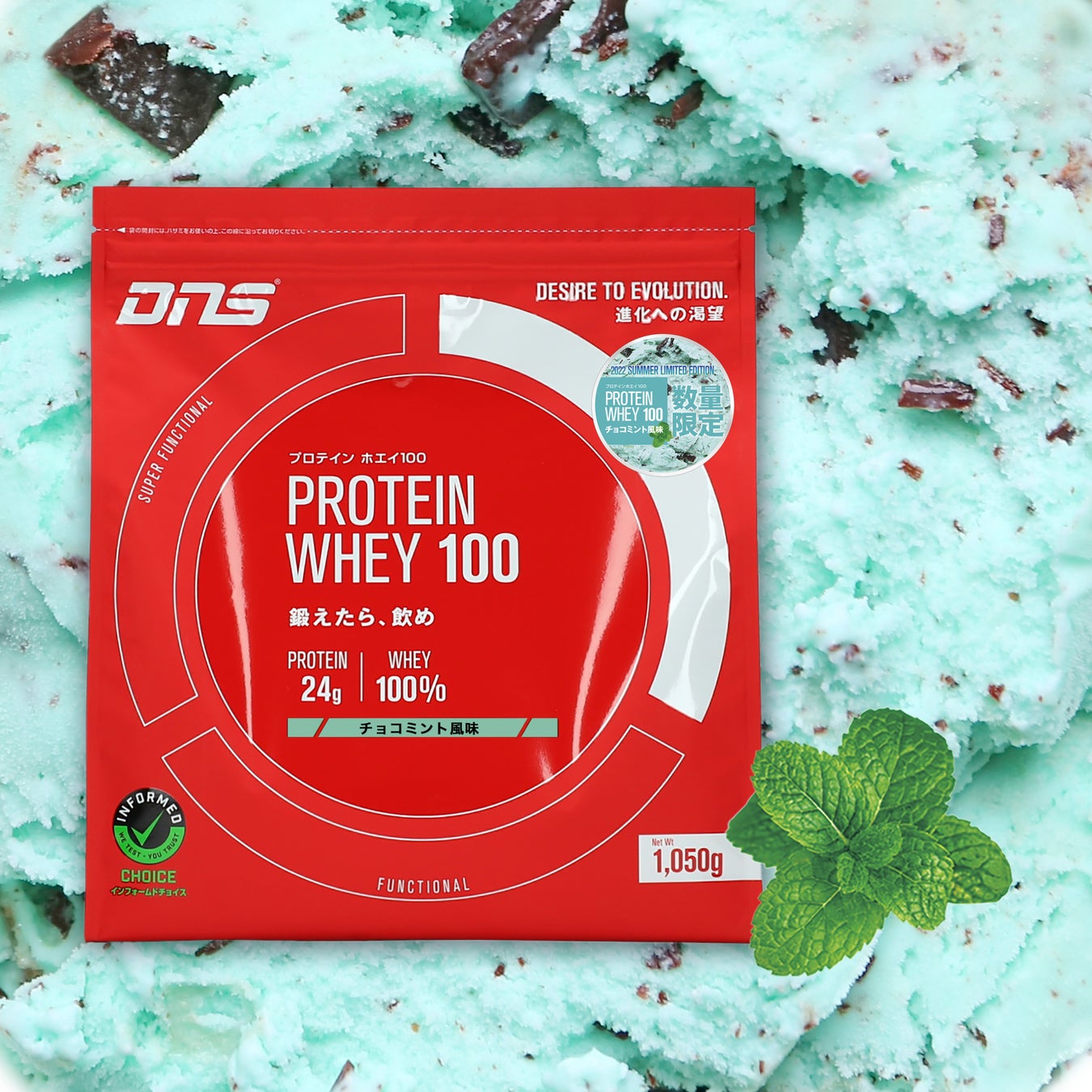 DNSでは毎年恒例、夏の数量限定フレーバープロテイン。2022年は「プロテインホエイ100 チョコミント風味」(以下、ホエイ100チョコミント)です。6月1日より順次DNS公式オンラインショップ、および全国のスポーツ量販店等にて数量限定で販売を開始いたします。