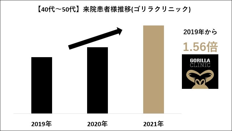 また、ミドル世代(40代~50代)の男性患者さまに限った場合、この2年で1.6倍(1.56倍)と徐々に増加傾向にあります。