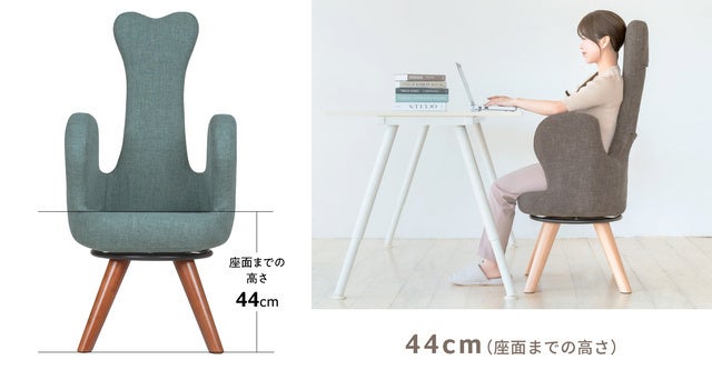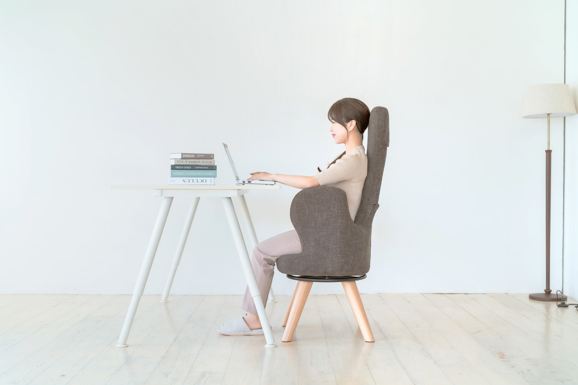うつむかなチェア ais®︎ は、座って体を委ねるだけで、首、腕、腰を快適にホールドする椅子です。