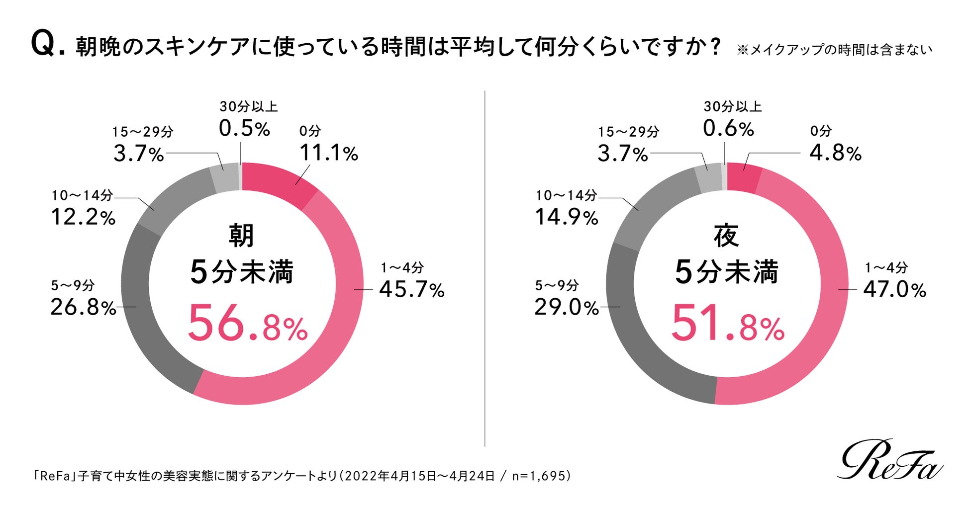 ・朝のスキンケアに使う時間は、約半数がわずか5分未満!