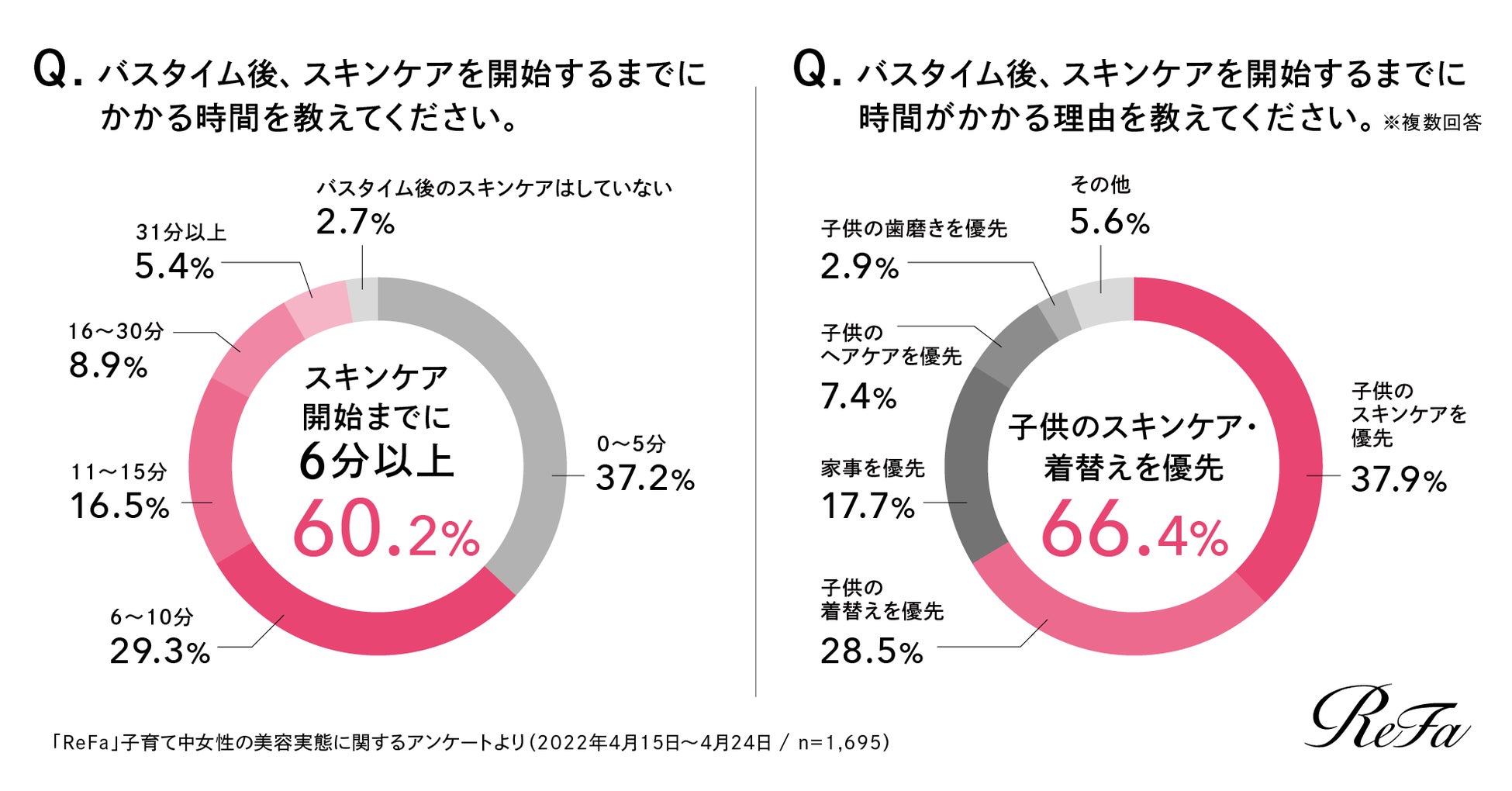ビューティーブランド「ReFa」が子育て世代を応援する取り組みをスタート。ワーママ美容実態調査「約60%のママが、バスタイム後5分以内にスキンケアを開始できない」と回答!