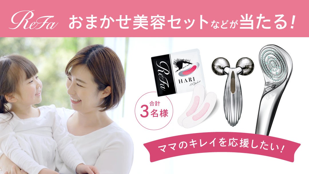 ReFaキャンペーン公式Twitterアカウント「@ReFa_Campaign」をフォローして、「時間があったらやりたいこと」と「お子様の年齢」をコメントしてください。コメントをお寄せいただいた方の中から、3名様に“リファのおまかせ美容”セットなどをプレゼント。
