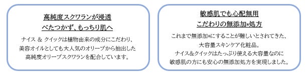 ナイス&クイックは無添加*にこだわり、敏感肌の方でも安心して使えるスキンケアを目指しました。
