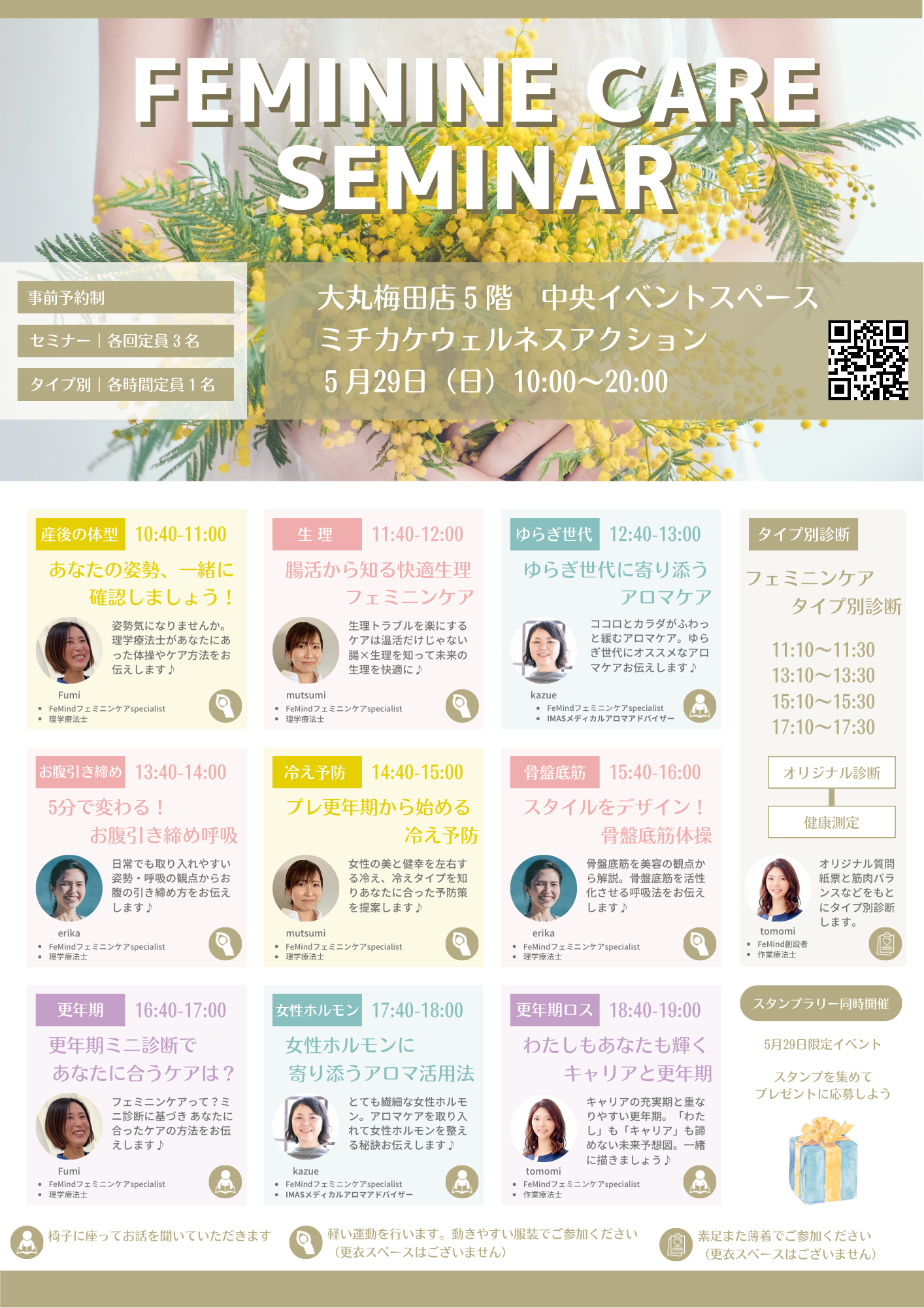【西日本最大級フェムテック展覧会】ミチカケ・ウェルネスアクション!5月29日に「生理・プレ更年期・更年期を快適にするフェミニンケア」を出展・フェミニンケアセミナー開催(~5月31日(火)、大丸梅田店)