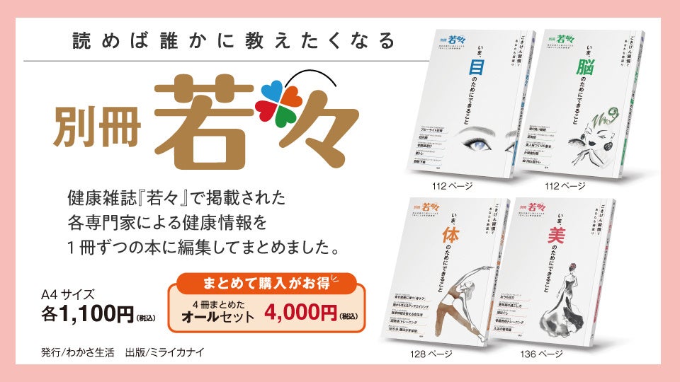 雑誌『若々』の各特集だけをまとめた書籍4冊が同時発売!