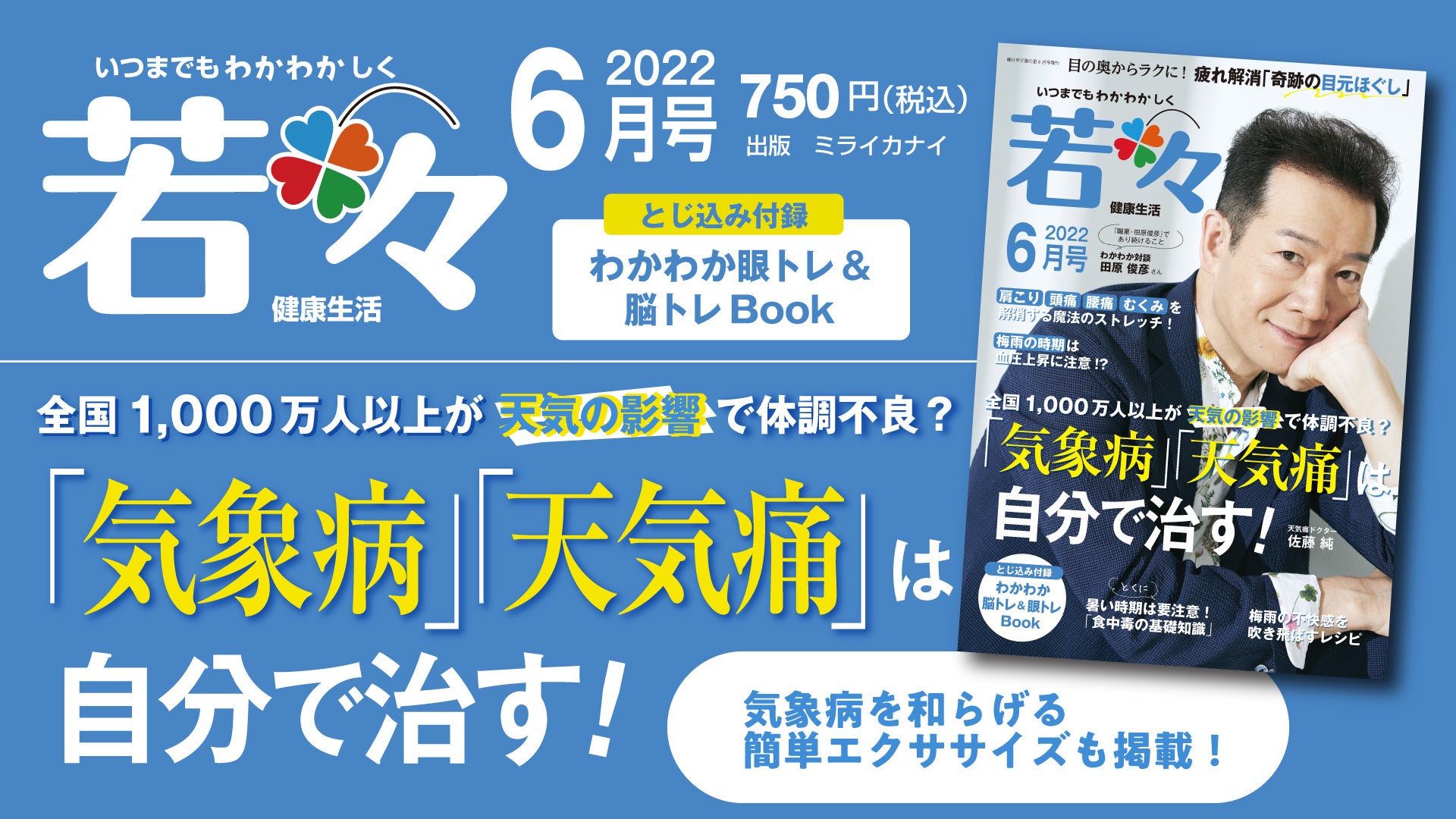 株式会社わかさ生活(本社:京都市下京区)は、健康雑誌『若々(わかわか)』2022年6月号を2022年6月1日(水)に株式会社ミライカナイ(本社:東京都中央区)から発売いたします。