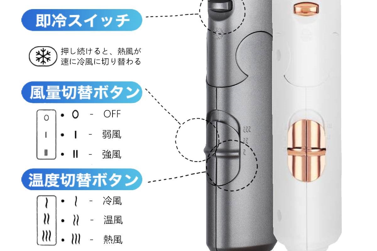 【2】風速2段階/風温3段階調節►季節や人によって異なる髪質・髪の状態に合わせて最適な風を選べる