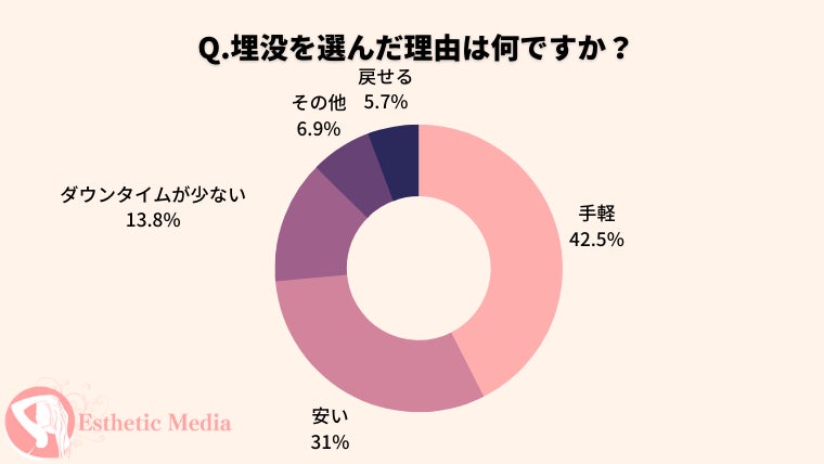 ・埋没の二重整形をした理由としては、「手軽」「安い」といった理由が挙げられました。