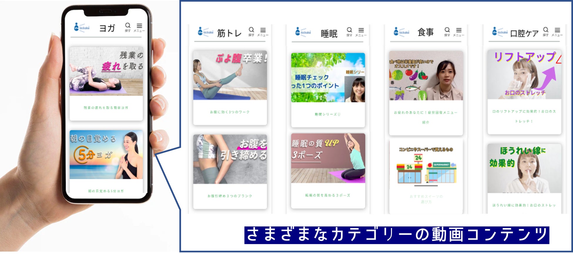 kickake®ビューンの健康動画見放題サービスは、健康意識の習慣化を目的として開発したオンラインコンテンツです。