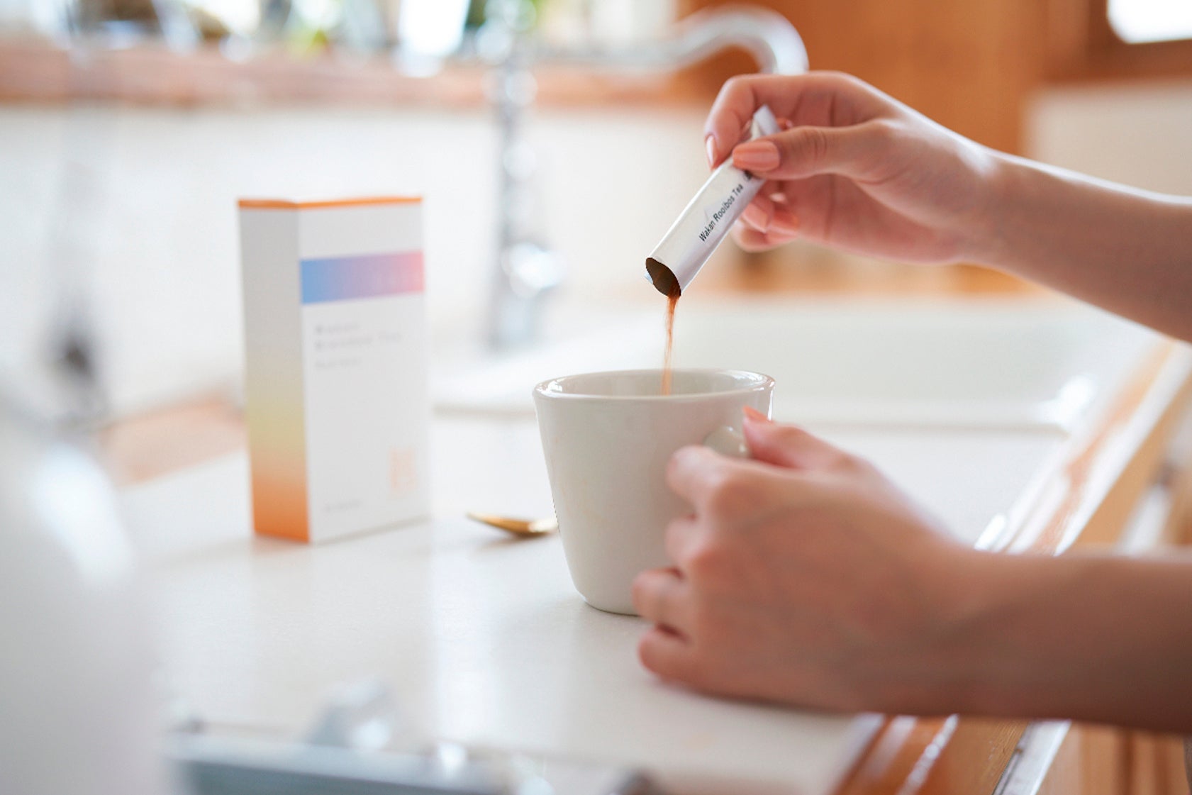 ルイボス茶をベースに、3種の和漢植物エキスがぬくぬくポカポカな時間をご提供します。ノンカフェインなのでお休み前にもおすすめです。リズムの乱れが気になる時も、じんわり温かな巡りに包まれてすこやかな毎日を。
