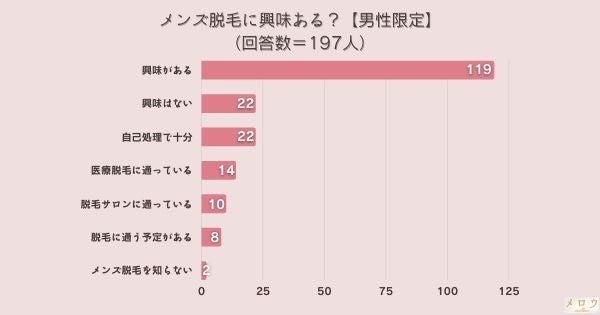 「メンズ脱毛に興味はある?(男性限定)」とアンケート調査した結果、1位は『興味がある』でした。