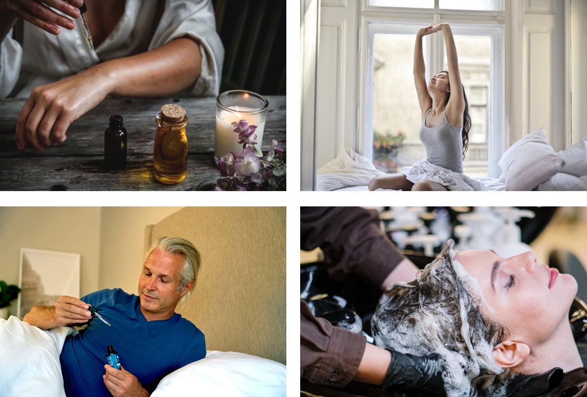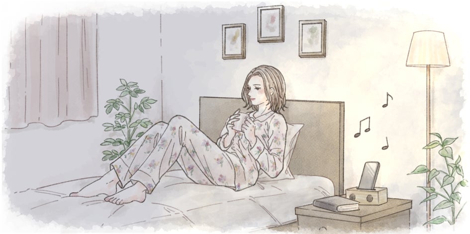 お休み前のメディテーションタイム。部屋の明かりを間接照明にして、眠りにつくために最適な音楽などを聴きながら、眠りにつく準備を。