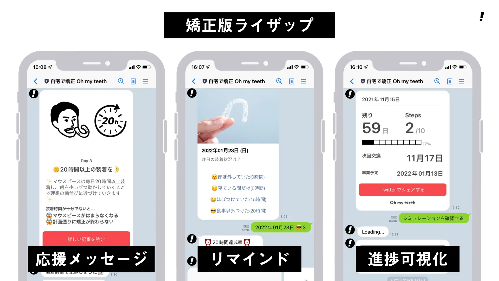 矯正中は専属医療チームがユーザーの矯正生活を24時間LINEサポートします。