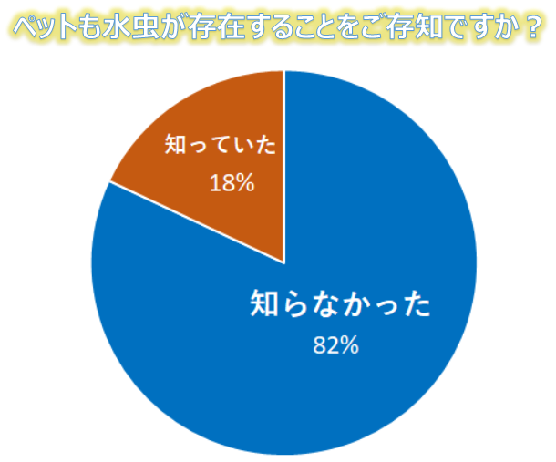 ペットも水虫が存在することをご存知ですか?という質問に対して“はい(知っている)”と答えた人が18%、“いいえ(知らない)”と答えた人が82%という結果でした。