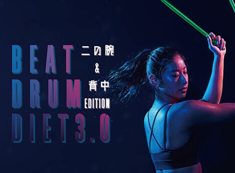 激しく振り、腕だけでなく全身でビートを打ち続ける有酸素運動と筋トレを組み合わせたエクササイズ。女性の悩みである二の腕と背中のシェイプアップ、そしてボディメイクを目指せます。