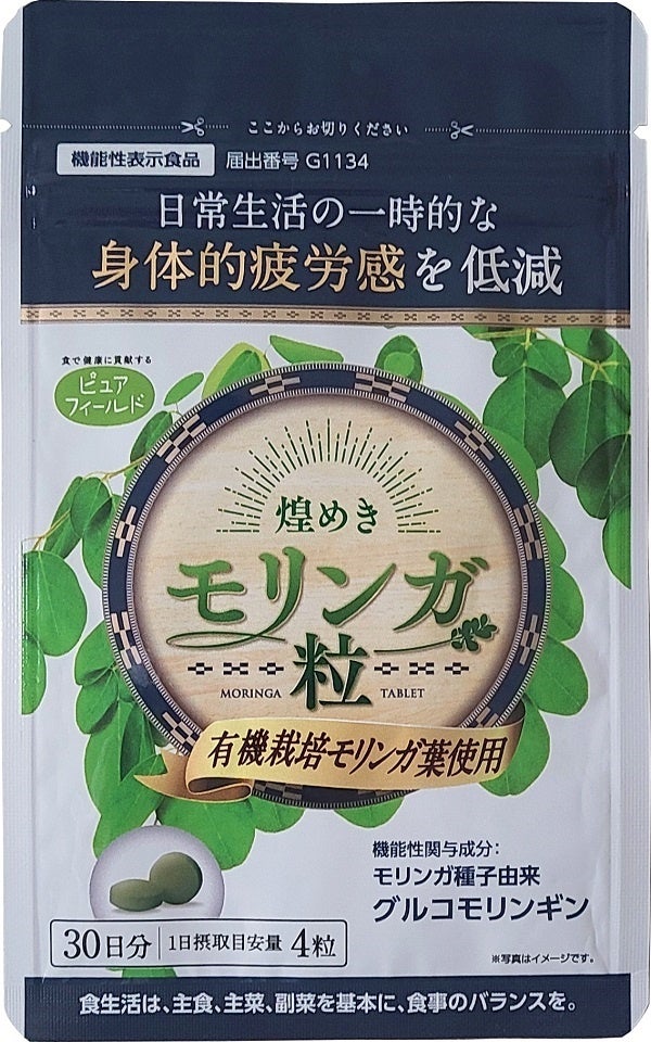 今回リニューアルした『煌めきモリンガ粒』は、モリンガ種子由来のグルコモリンギンを配合した機能性表示食品です。グルコモリンギンは、日常生活で疲れを感じやすい方の一時的な身体的疲労感を低減する機能が報告されています。日常生活で疲れを感じやすい方におすすめです。