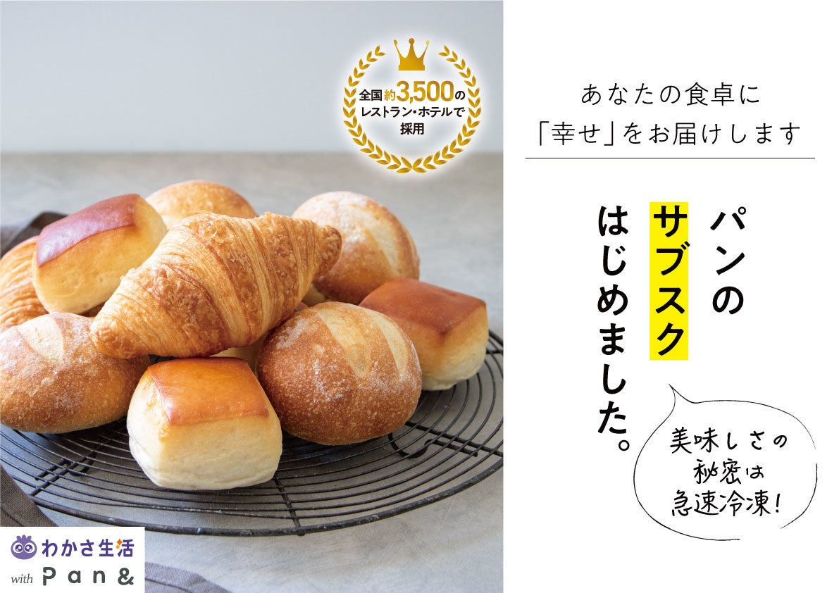 株式会社わかさ生活(本社:京都市下京区)は、2022年6月1日(水)より、焼きたてのパンの美味しさを急速冷凍で閉じ込めた冷凍パンのサブスクサービス『幸せのパンのサブスク』を開始いたします。