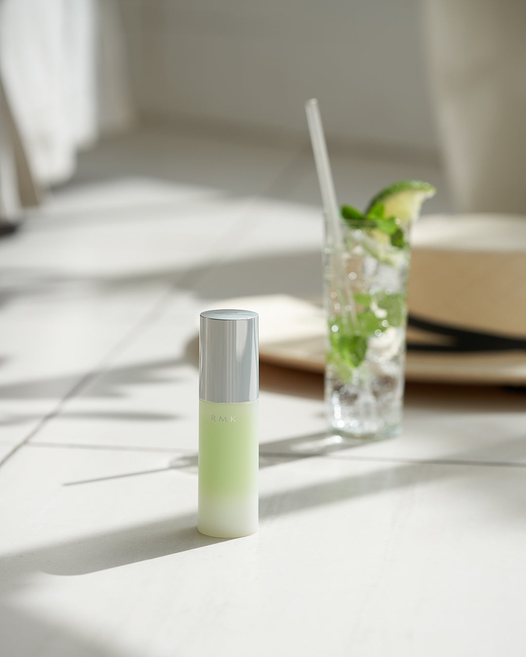 セージ葉エキスやペパーミント葉エキスなどの保湿効果のある美容成分を配合。紫外線やエアコンなどの過酷な環境にさらされる夏肌にうるおいをあたえて、ファンデーションの仕上がりともちを高めます。フレッシュ&スパイシーなパクチーミントの香り。