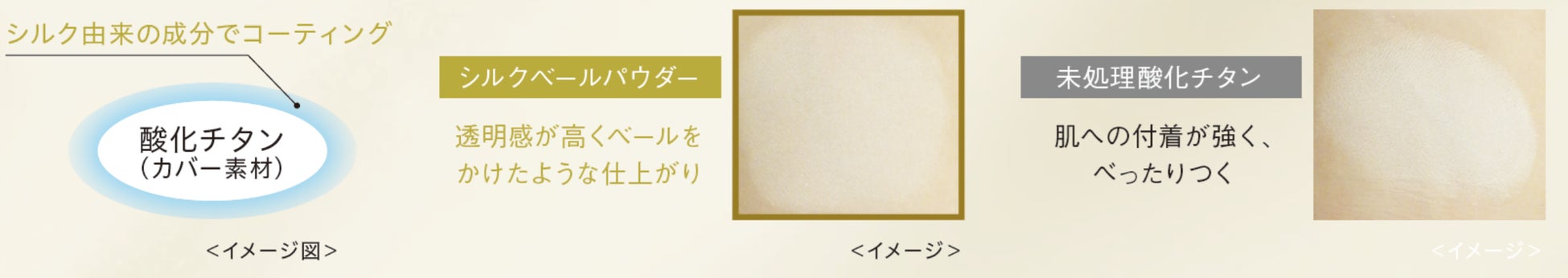 こだわりの粉体技術でくすみ感がなく透明感のある仕上がりとシルクのようになめらかな質感を実現します。ジェリーコーティングした板状パウダーを採用し、乾燥しにくく肌にぴたっとフィットし、マスク着用時でも化粧くずれしにくい処方となっています。新たにカミツレ花エキス(保湿)を配合し、しっとり心地よい感触に仕上げました。