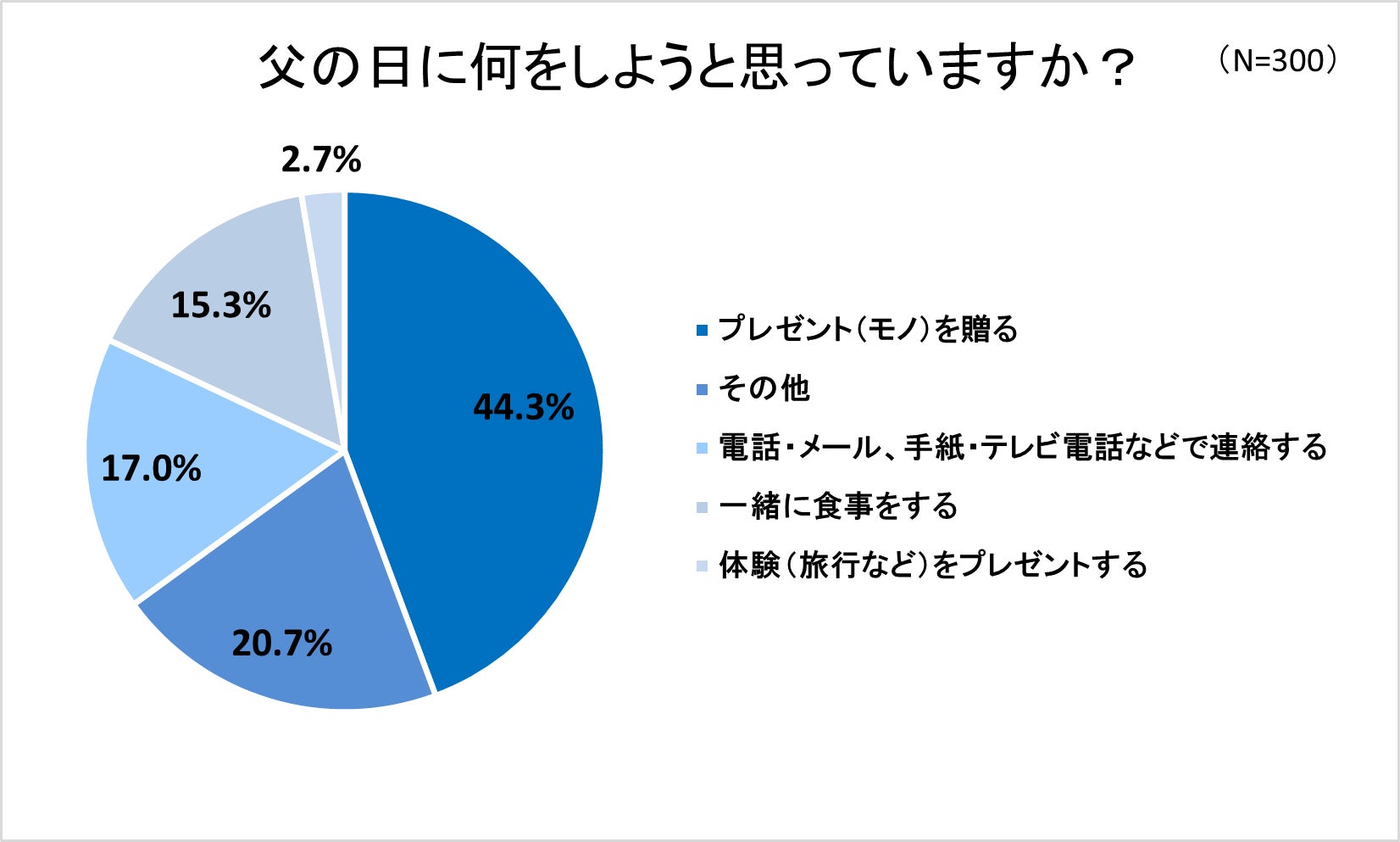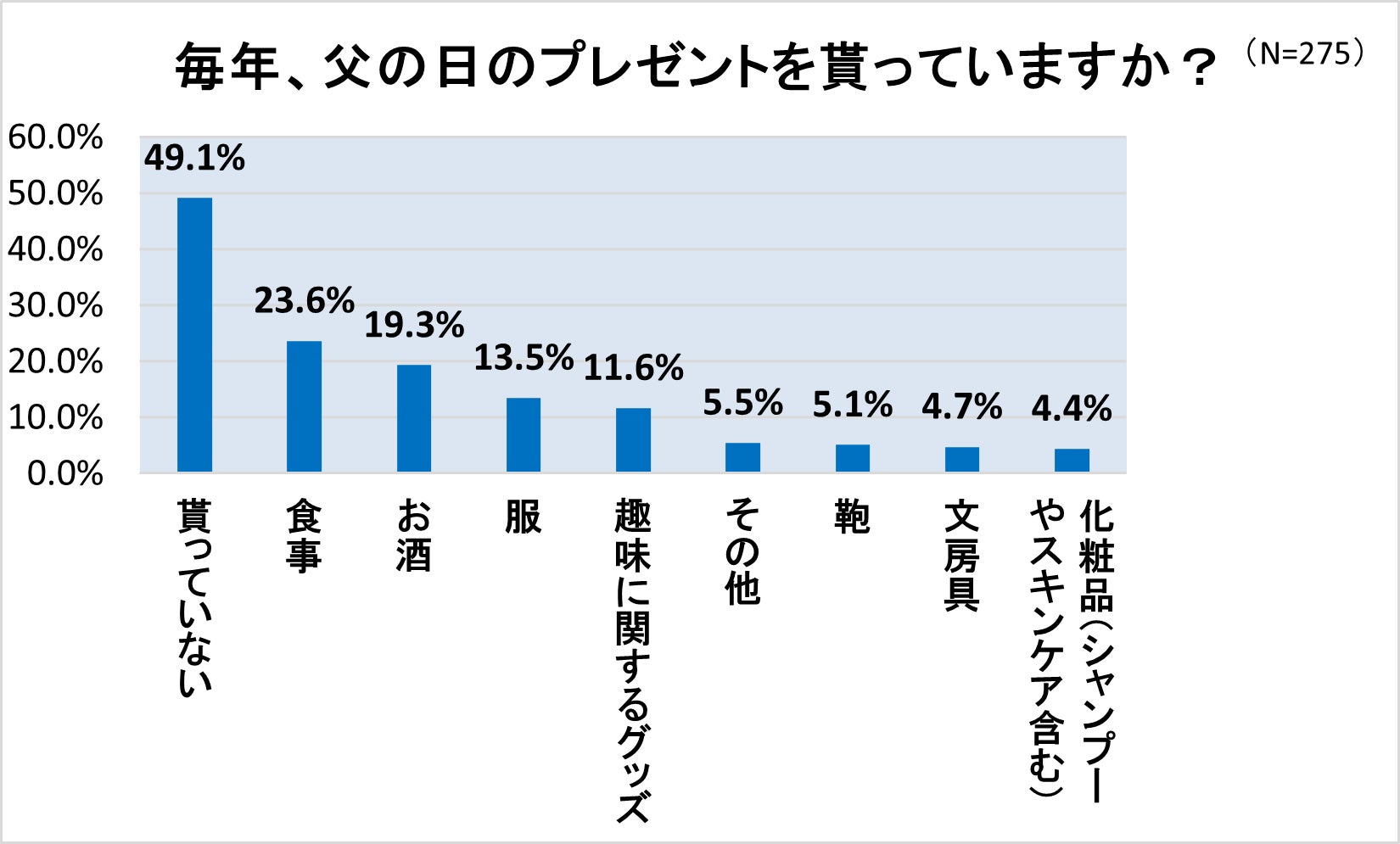 また、別の調査結果では「父の日」と「母の日」を比較したところ「何も贈らない」と回答している人が母の日の倍ほどになっており、父の日は何もしない人が多いという結果になりました。