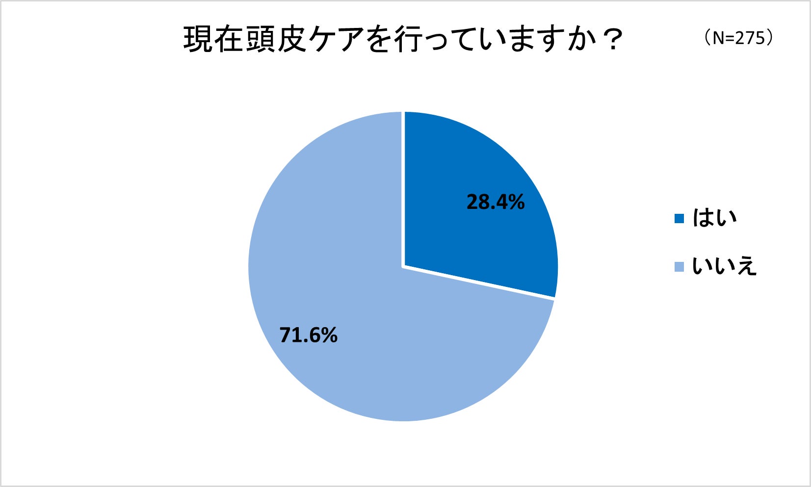 頭髪の悩みはありますか?という問いに対して、約6割の人がなんらかの頭皮・頭髪の悩みを抱えていることがわかりました。最も多かったのは「薄毛・抜け毛」の悩みで約4割という結果になりました。AGA(壮年性脱毛症)は早ければ20代でも発症すると言われているため、若々しくいたいと思うお父さんにとってはかなり気になるポイントのようです。しかし、現在頭皮・頭髪のケアをおこなっていますか?という問いに対して「はい」と回答したのは3割にも満たない結果となりました。悩んではいるけど、ケアはできていない人が多いようです。