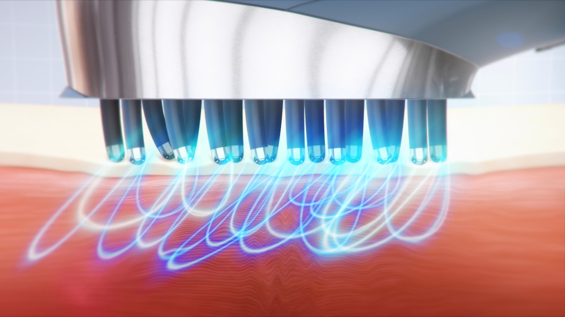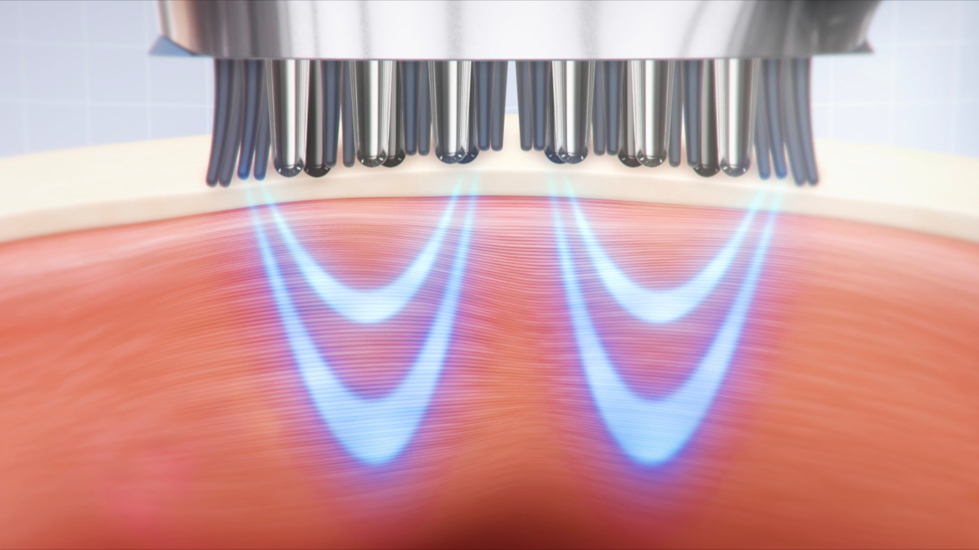 22本の柔軟なピンから低・中周波EMSを複雑に出力。30種類以上から構成される表情筋に対して、あらゆる方向からEMSを出力し多角的かつ集中的に表情筋を刺激することが可能。さらに、マイクロカレントも同時に出力し、表情まですっきりとした印象へ導きます。ブラシのフィット感がアップしたことで、よりリフトケア*3をサポートします。