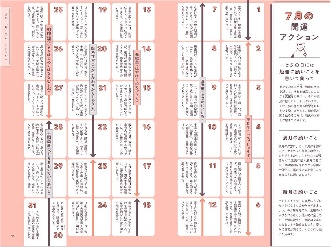 日本に古くから伝わる太陰太陽暦をとりいれた開運カレンダーも付属。365日毎日の開運行動で季節の流れ