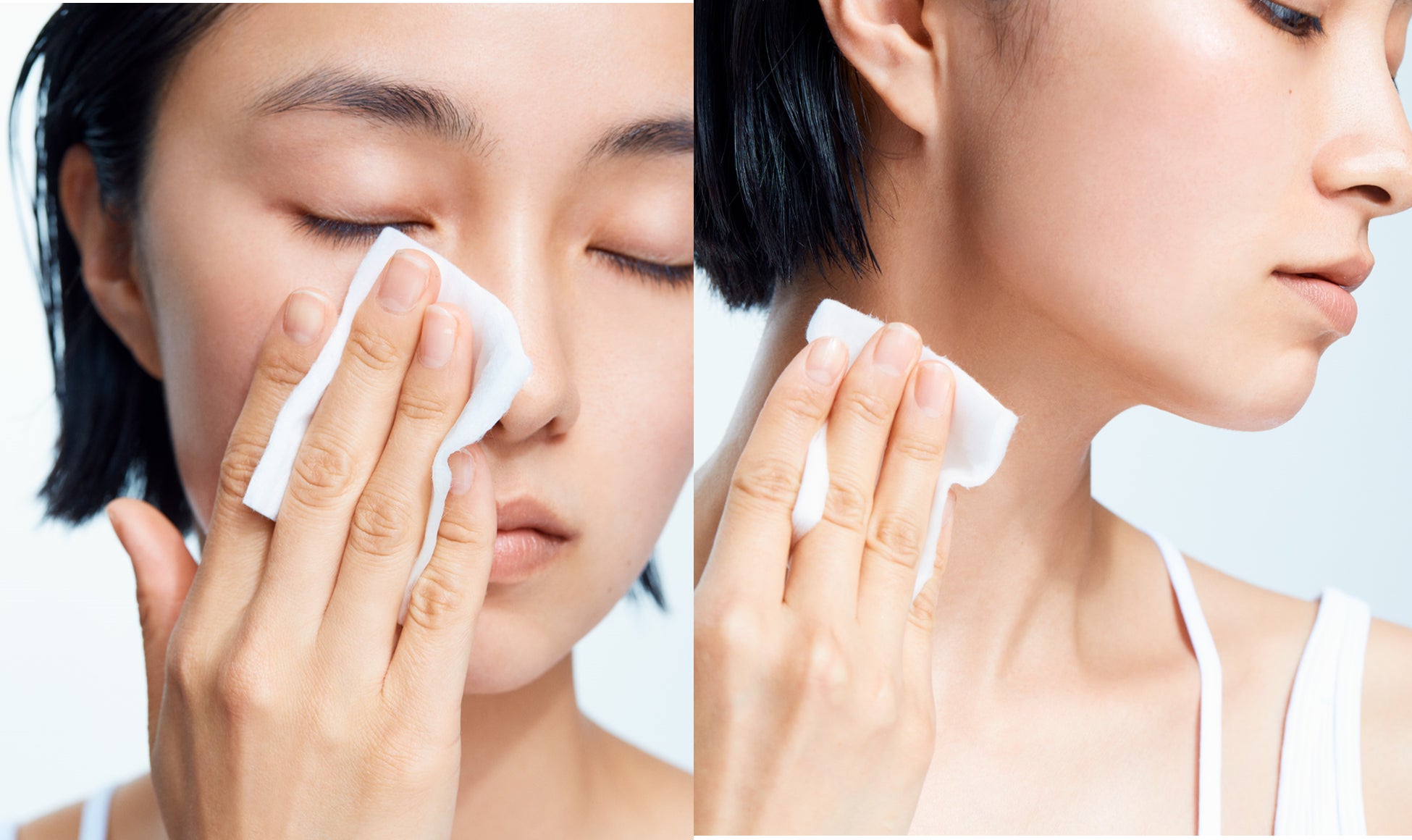 吸着効果の高いべントナイトやセルロースを配合した二層式のふき取りローション。細かい粒子が毛穴や角層に潜む隠れ汚れや皮脂をしっかり抱え込んで吸着します。さらに抗菌作用に着目したオオバクエキス※1や、肌荒れをケアするツボクサエキス※2やブライト効果のあるホワイトストロベリー※3などのフルーツエキスを配合し、取り除きながら同時にケアまで叶えます。