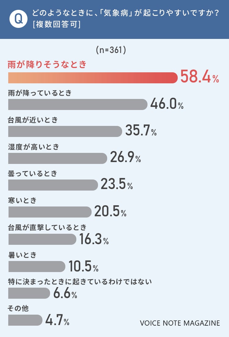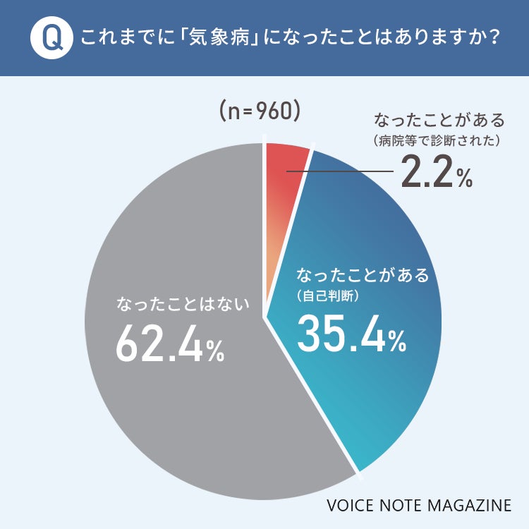 アンケートサイト「ボイスノート」(運営会社:株式会社NEXER)は、気象病についての調査を実施し、その結果を姉妹サイト「ボイスノートマガジン」にて公開いたしました。