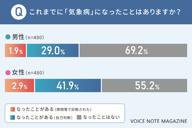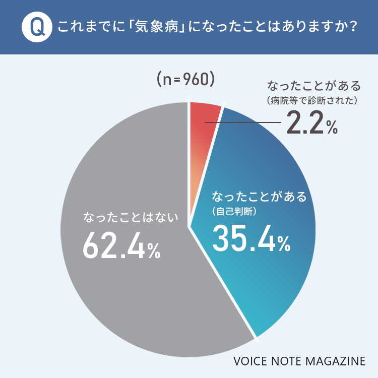 続いて、これまでに「気象病」になったことがあるか聞きました。
