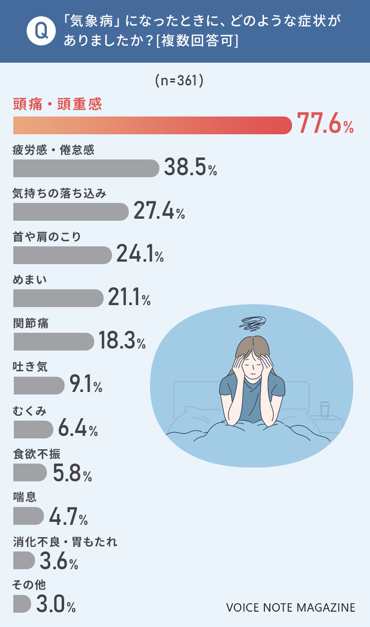 「気象病」になったときに、どのような症状があったのか複数回答可で聞きました。