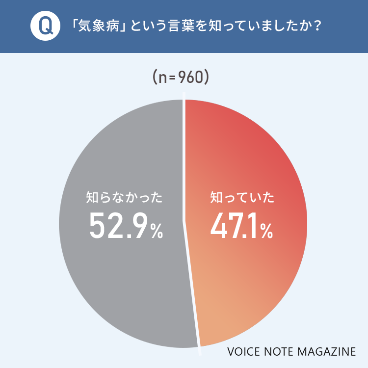 47.1%の方が、気象病という言葉を「知っていた」ようです。