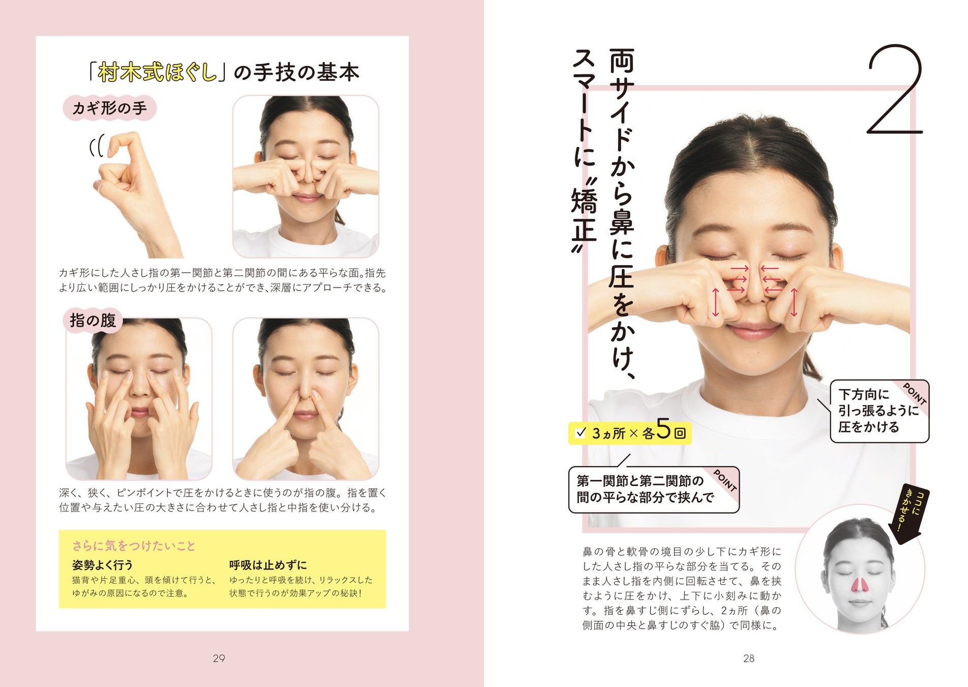 今回の【美鼻矯正メソッド】では鼻すじを通す、鼻の根元を高くしてホリの深い印象にする、小鼻を小さくする、といったことをセルフケアで改善することができます。「鼻に納得いかない人を手助けしたい」という思いが込められた一冊、『鼻のむくみ・ゆがみとり! 顔印象変える 美鼻矯正』。ベストセラー『奇跡の頭ほぐし』の著者である村木さんが考案したメソッドですから、“結果”は乞うご期待! 鼻が気になる方はぜひご一読を。村木式の美鼻矯正メソッドはイメチェンの手立てとしてもおすすめです。