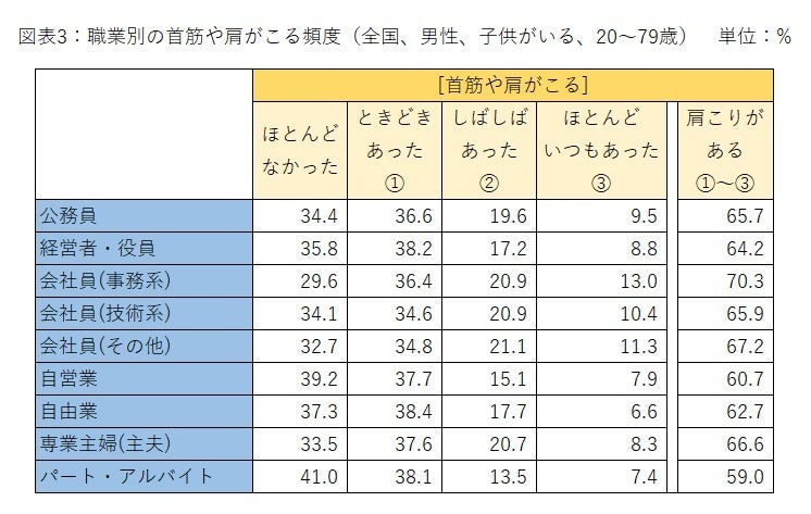 - 肩こりお父さんが多い職業No.1は事務系会社員!デスクワークで長時間のデジタルデバイス使用が原因に