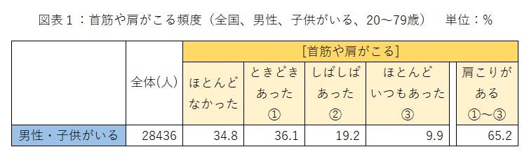 - 日本のお父さんの65.2%が肩こりに悩んでいる
