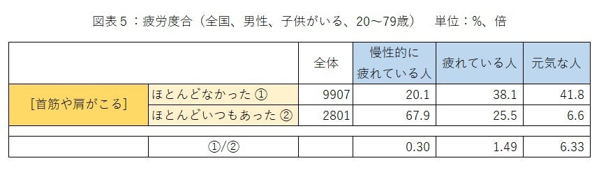 - 高頻度で肩こり症状があるお父さんのうち元気な人は6.6%
