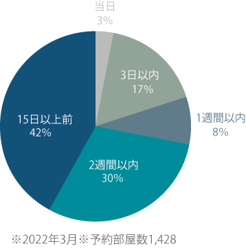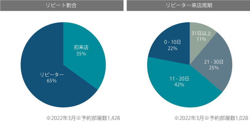2022年3月のデータでは65%のお客様がリピート利用。平均では約15日でリピートしていただいています。
