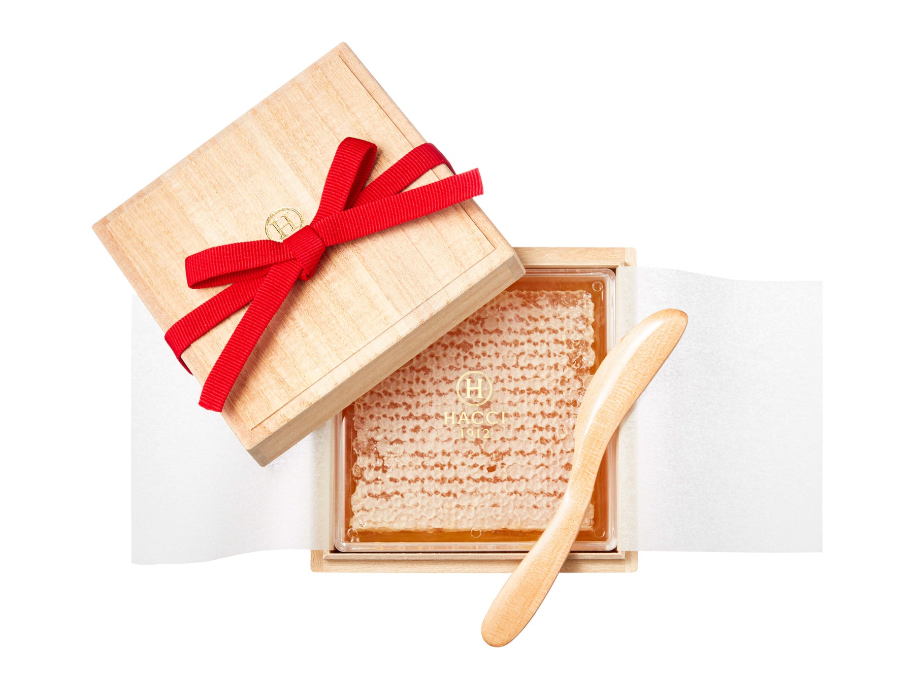 創業110年の老舗養蜂園がルーツのHACCIより厳選したはちみつに加え、人気の「巣蜜」、「蜜かすてら 焦がし蜂蜜」と「はちみつバウムクーヘン」、今夏に限定発売の「はちみつ飲料2本セット」など、高級感漂う桐箱にはちみつを堪能できる豊富なバリエーションで展開しております。